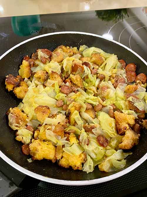 Frita-se até alourar e junta-se então o coelho temperado, com a marinada.