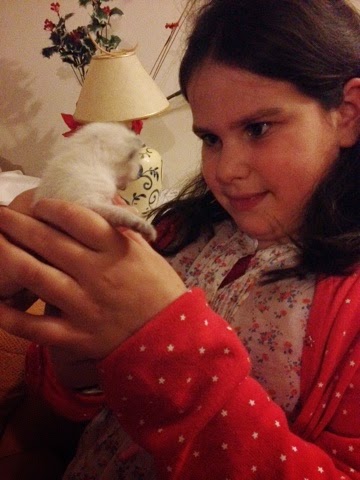 Em primeiro lugar obrigada a todos pelas simpáticas mensagens de Aniversário que deixaram à minha filha!Quisemos marcar o dia de hoje oferecendo-lhe o seu presente, a gatinha branca Fifi Miósotis ?Fomos hoje conhecê-la mas só irá para nossa casa quando for mais crescida e deixar de mamar, mais umas quatro a seis semanas.Para já vamos ...